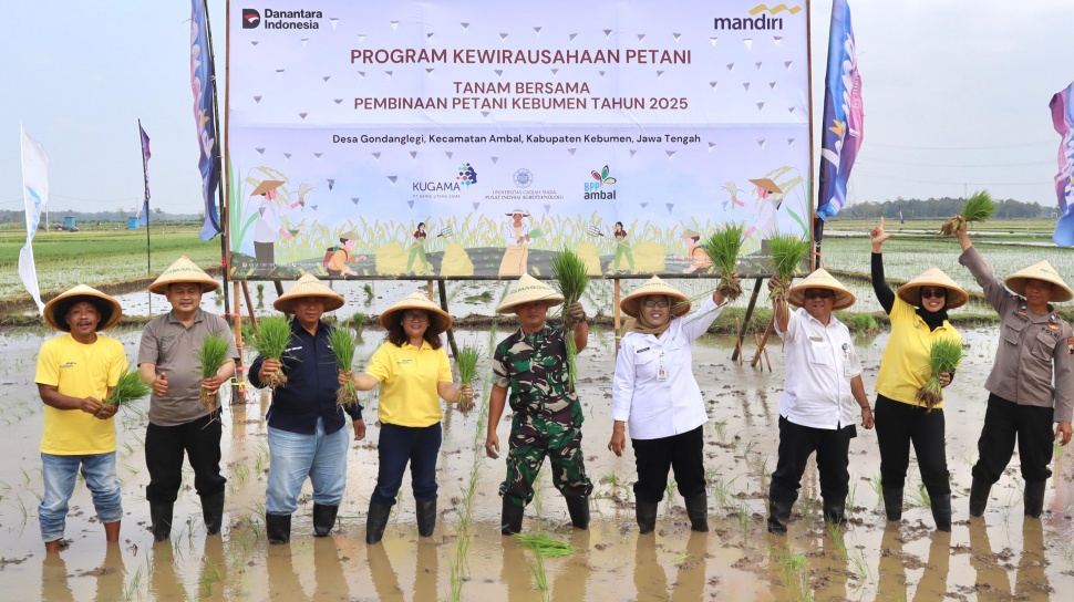 Melalui inisiatif Program Kewirausahaan Petani, Bank Mandiri memberdayakan petani dari hulu hingga hilir, sekaligus menghadirkan teknologi pertanian modern yang ramah lingkungan. Dalam pilot project yang melibatkan 30 petani di Desa Gondanglegi, Kabupaten Kebumen, Bank Mandiri bekerja sama dengan Universitas Gadjah Mada (UGM) menggelar Tanam Bersama Pembinaan Petani Kebumen pada Rabu (13/8/2025).