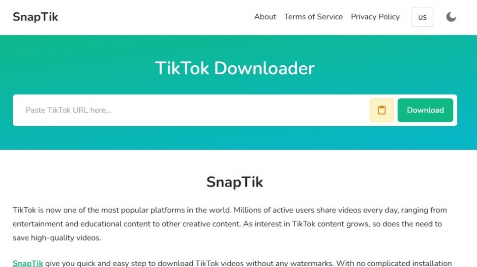 Snaptik adalah sebuah layanan online yang memungkinkan pengguna mengunduh video TikTok tanpa watermark hanya dengan menyalin tautan video. Cara kerjanya sangat sederhana: