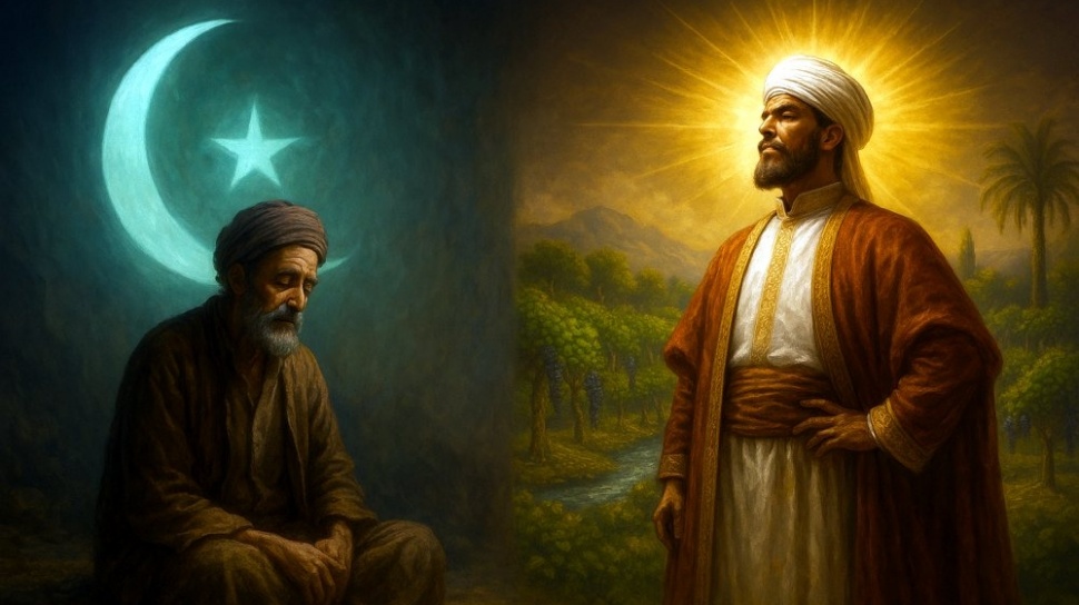 Allah ﷻ dalam Surat Al-Kahfi ayat 32–33 menggambarkan dengan sangat jelas perbedaan nasib antara dua orang sahabat. Yang pertama adalah seorang mukmin yang hidup sederhana, tidak memiliki banyak harta, namun ia tetap teguh dalam iman.