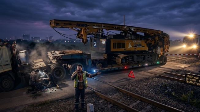 SuaraJawaTengah.id - Gangguan perjalanan kereta api terjadi di Semarang setelah sebuah truk trailer pengangkut alat berat mogok dan tersangkut di perlintasan rel. Insiden tersebut terjadi pada Senin malam hingga Selasa dini hari (9–10/3/2026) dan menyebabkan sejumlah perjalanan kereta api mengalami keterlambatan.