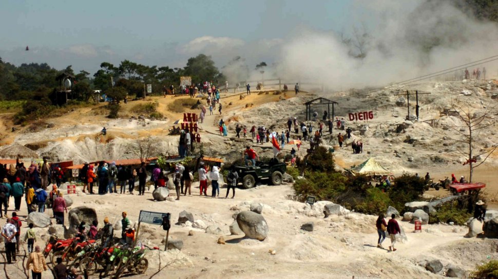 - Dieng Plateau menyajikan objek populer seperti telaga warna dan Kompleks Candi Dieng di ketinggian 2.000 meter.