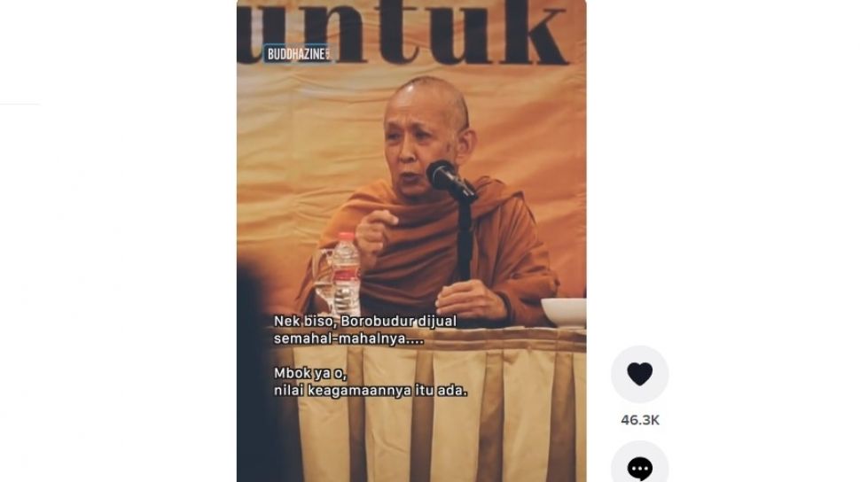 SuaraJawaTengah.id - Dalam sebuah Video Tiktok (VT) yang diunggah oleh akun tiktok @buddhazine, Kepala Wihara Mendhut Biksu Sri Pannyavaro Mahathera menanggapi rencana kenaikan tarif Candi Borobudur.
