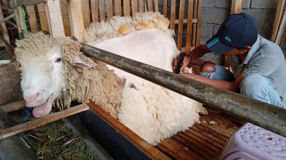 Meski sudah lama punya pengalaman beternak kambing atau domba, baru sekitar setengah tahun ini Mas B membuka jasa pangkas bulu domba.
