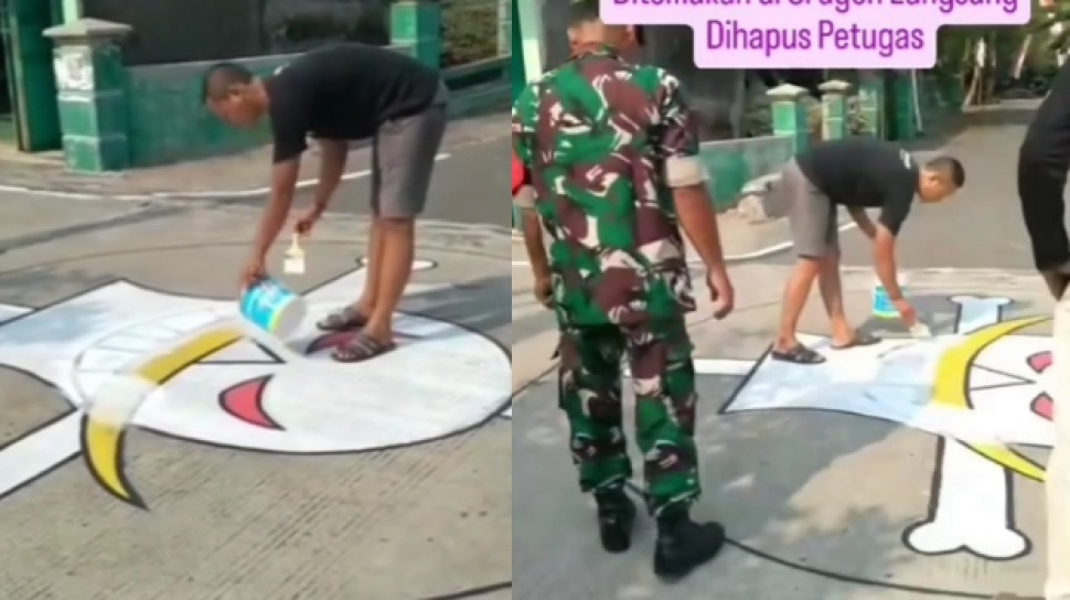 Tangkapan layar video detik-detik mural bergambar one piece dihapus aparat. [Instagram/@icws_infocegatanwilayahsragen]