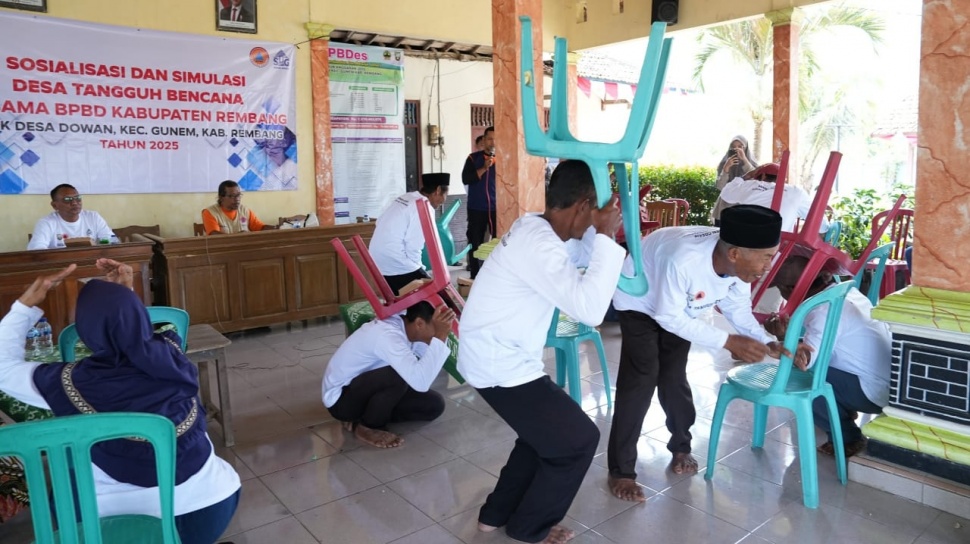 SuaraJawaTengah.id - PT Semen Gresik menggelar kegiatan Sosialisasi dan Simulasi Desa Tangguh Bencana bekerja sama dengan Badan Penanggulangan Bencana Daerah (BPBD) Kabupaten Rembang, yang berlangsung di Desa Dowan, Kecamatan Gunem, Kabupaten Rembang (6/8/2025).