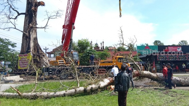 - Sisa batang pohon akan dijadikan monumen setinggi delapan meter sebagai ikon desa setelah kajian UGM menyatakan mati.