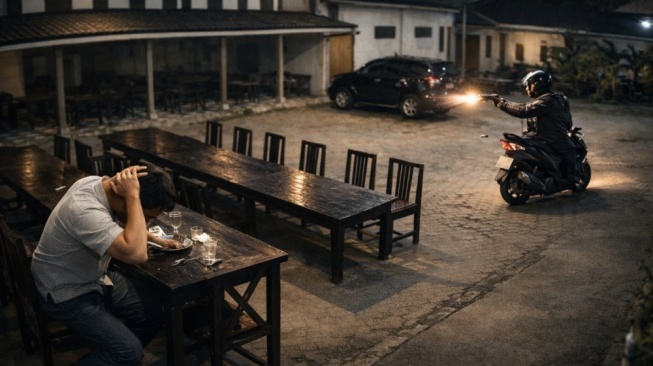 Saat itulah pelaku datang menggunakan sepeda motor, berhenti sejenak di depan rumah, lalu langsung melepaskan satu tembakan sebelum melarikan diri.