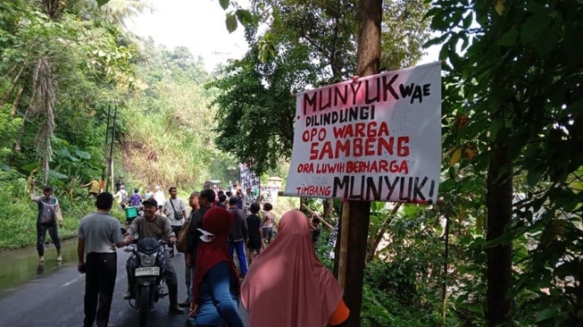Warga juga mengaitkan penolakan penambangan dengan letak Desa Sambeng yang masuk kawasan penyangga Candi Borobudur yang berstatus warisan dunia UNESCO.